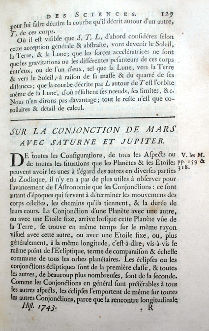 De la Conjonction de Mars avec Saturne et Jupiter 1743, Paris 1746 |