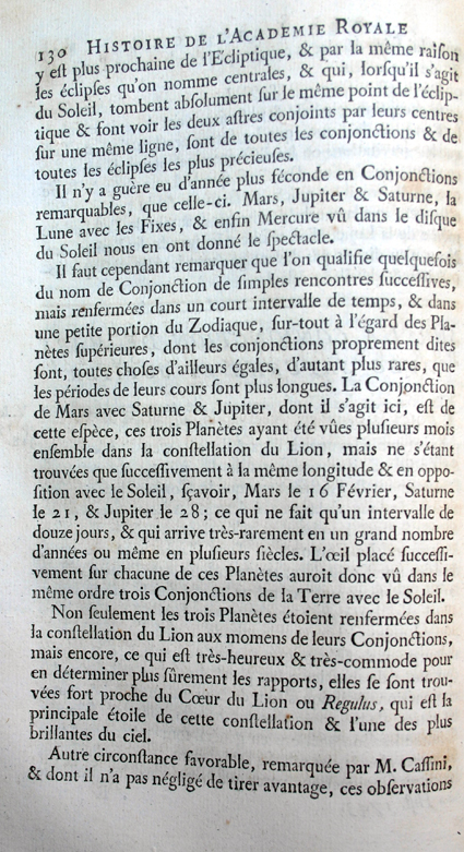 Il 24 luglio 1743 Jacques Cassini, figlio di Giandomenico, illustrò all’Académie questa serie di fenomeni con una lunga relazione che sarebbe stata successivamente pubblicata nelle Mémoires dell’anno 1746.