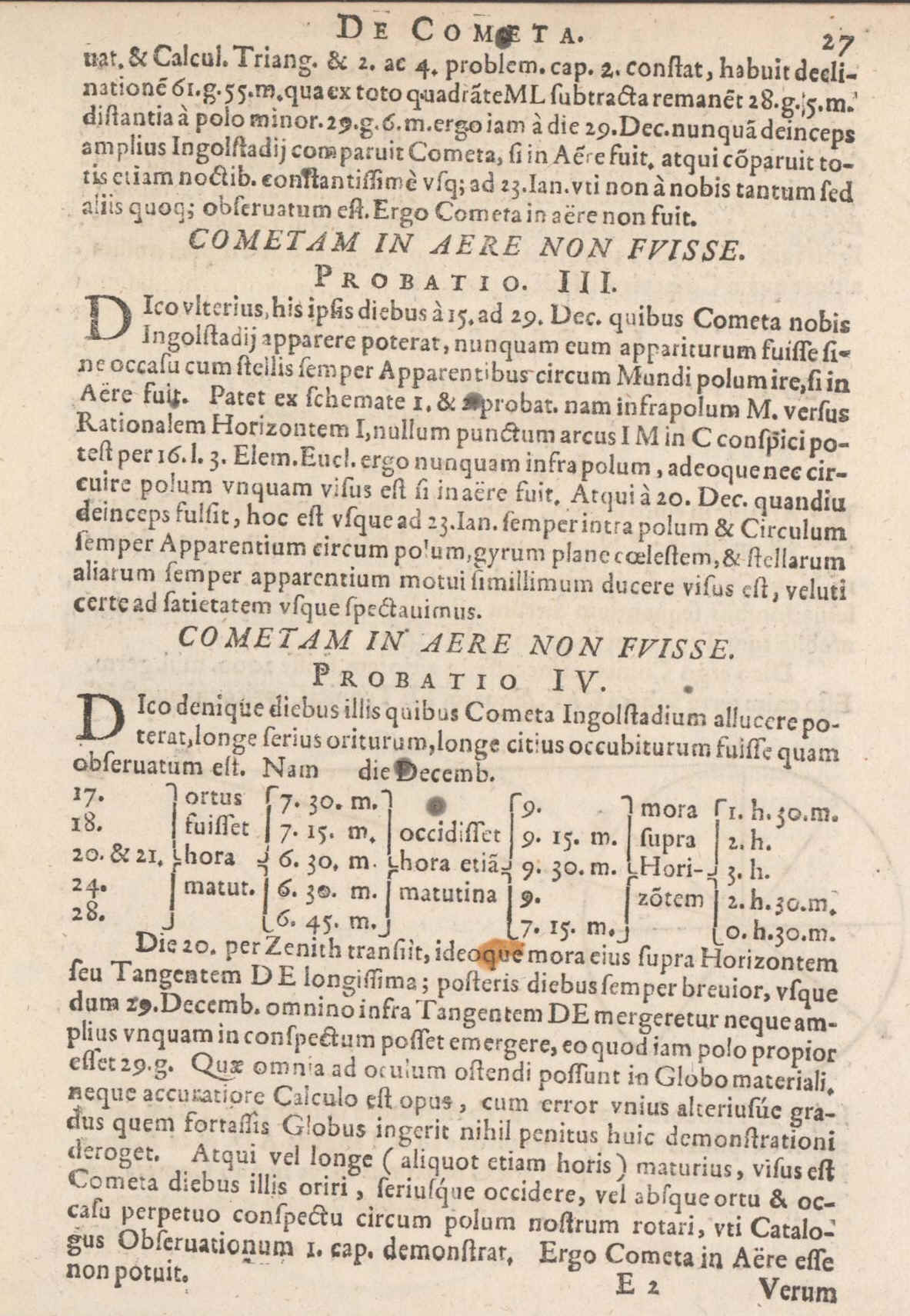 III, Cometae à terris distantia, Sphaera, & locus in mundo, dove viene