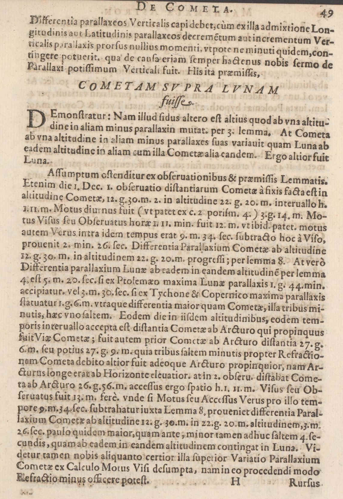Caput III, Cometae à terris distantia, Sphaera, & locus in mundo