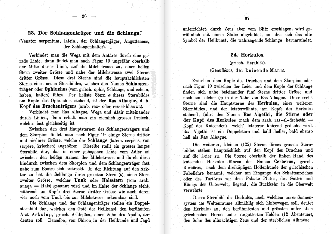 Unser nächtlicher Sternenhimmel: ein Taschenbuch für die studierende Jugend sowie für nächtliche Wanderer ; mit einer Sternenkarte und 27 Figuren, Bamberg 1887 e 1888