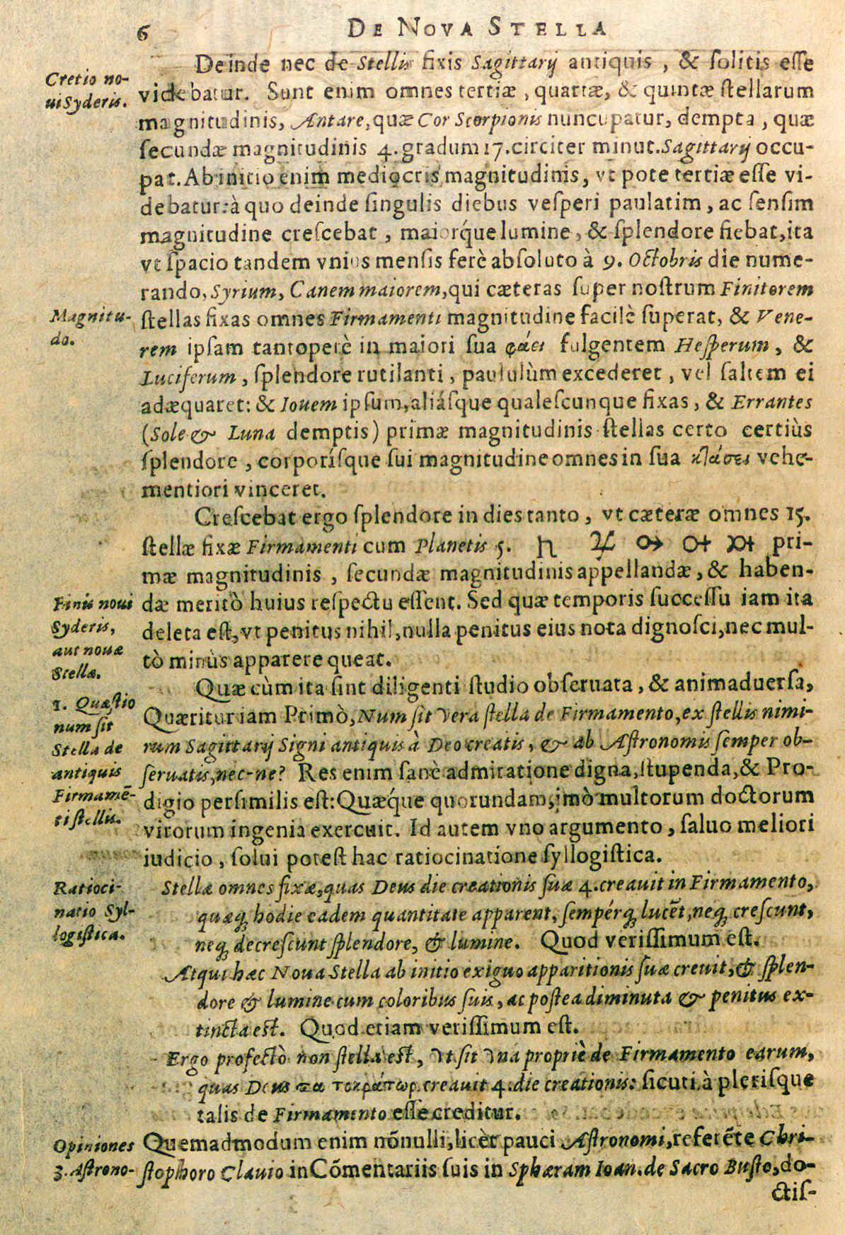 Quello che esaminiamo del 1606 è dedicato alla comparsa nel settembre 1604 di una Stella Nova nella zona di cielo occupata da un piede del Serpentario, la stessa di cui si occupò anche Keplero nel suo De stella nova in pede serpentarii, et qui sub ejus exortum de novo iniit, Trigono Igneo. Pragae 1606,