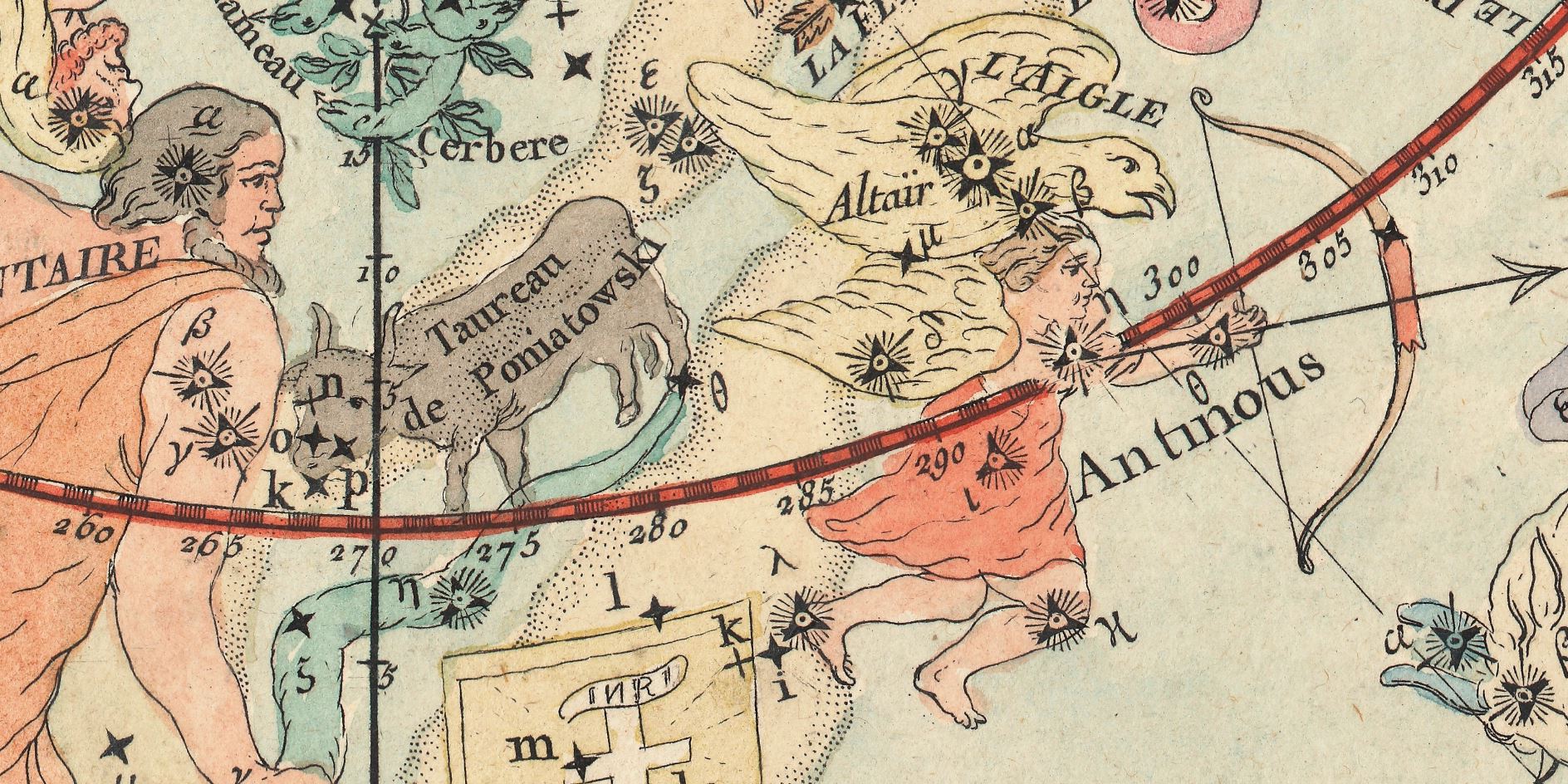 Non mancano comunque delle innovazioni rispetto alle tavole del 1778: ad esempio l’introduzione del Taureau de Poniatowskyi, costellazione ora caduta in disuso, e ideata da M. Poczobut, astronomo di corte del re di Polonia, soltanto due anni prima: nel 1777 (http://www.atlascoelestis.com/desu%20poczobut.htm).