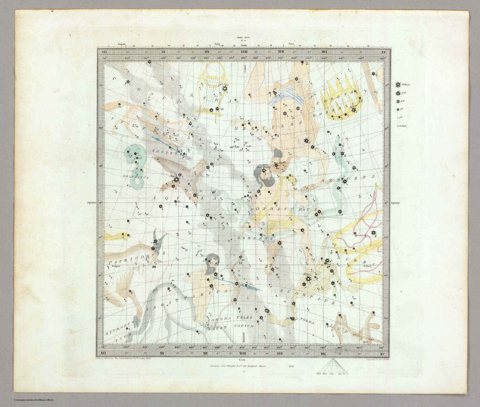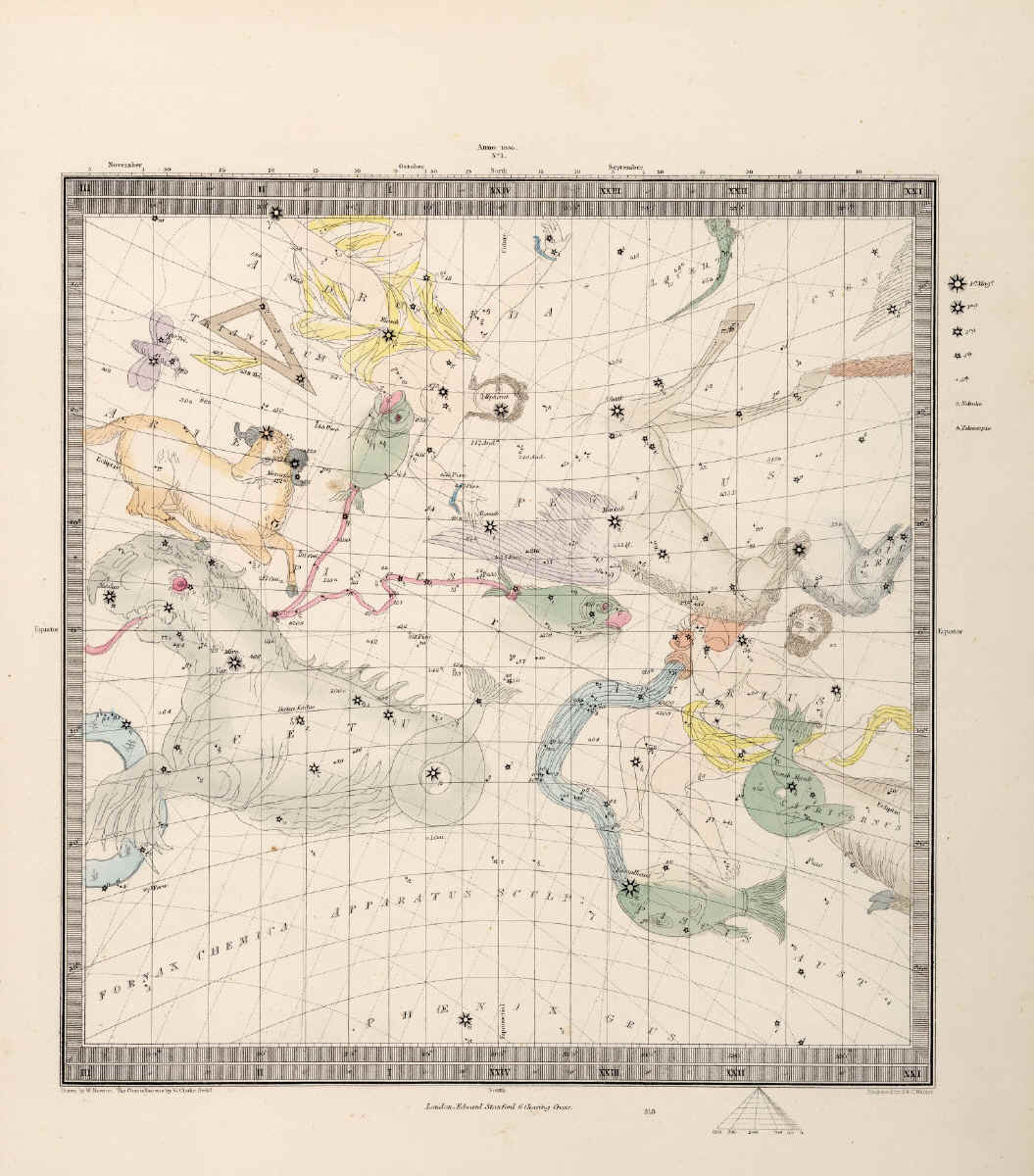 Atlante celeste ad uso didattico in sei mappe costruite in proiezione gnomonica.
