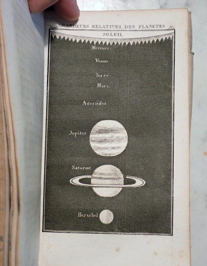 Here is a French language book titled "Beautés et Merveilles du Ciel" by Thomas Squire was published in 1825. It is a French language translation of the English language book "A Popular Grammar or the Elements of Astronomy", that was published in 1823. The world catalog lists only about two dozen copies of the French language edition. The original 1823 English language edition has one listing in the World Catalog, but about 37 copies of the 1836 edition. I was able to find one copy of the 1825 French edition on ABE Books and I noticed that the star map on that copy appears as the frontispiece while the star map of my copy appears between the preface and chapter one. Instead of a frontispiece my copy has a list of books available from the bookseller located in Brussels. I was able to locate a digitized copy of the 1818 English edition and it is very apparent that the 1825 French edition was heavily edited.