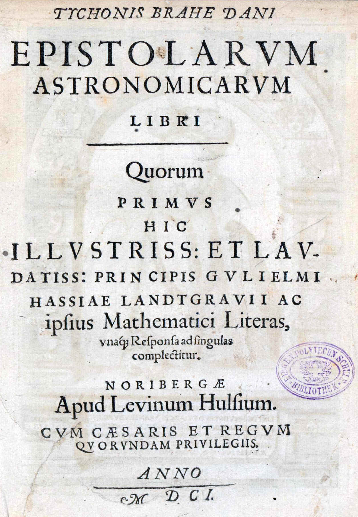 Hafniae 1573 Tychonis Brahe ... Epistolarum astronomicarum libri: quorum primus hic ... principis Gulielmi Hassiae landgravii ac ipsius mathematici literas, unaq[ue] responsa ad singulas complecitur, Noribergae : apud Levinum Hulsium ..., 1601 Tychonis