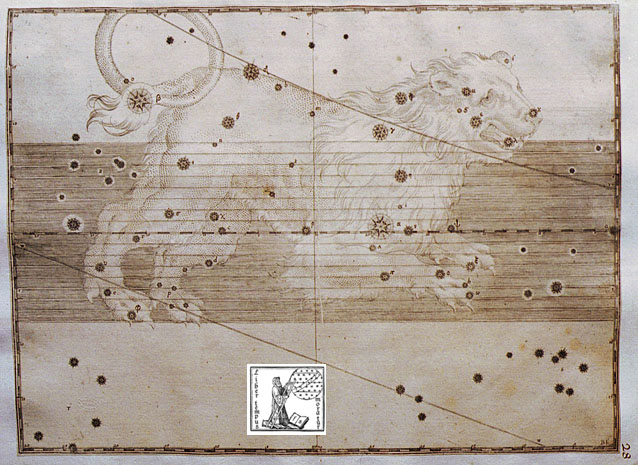 La proiezione utilizzata dall'autore è quella polare stereografica concava, il reticolo imperniato sul polo eclittico permette di leggere la longitudine e l'altezza delle stelle, riportate fino alla sesta magnitudine, attraverso tacche di un grado, la numerazione relativa alla longitudine ricomincia ogni 30 gradi. La fascia dove è possibile scorgere i pianeti, 8 gradi a sud e a nord dell'eclittica, è evidenziata da un reticolo di quadretti di un grado di lato.
