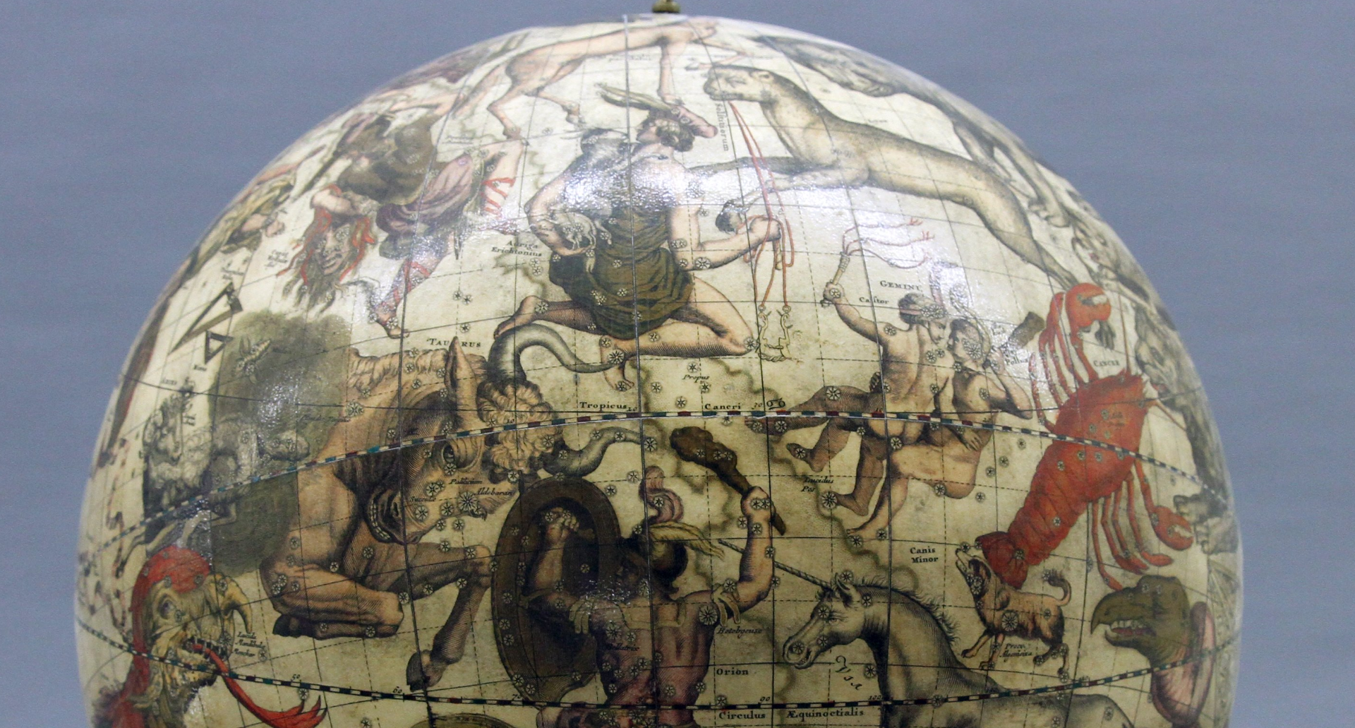 The globes come from the German castle Schloss Breitenburg, the ancestral home of the Counts of Rantzau in Schleswig.