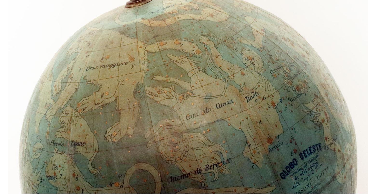 Aggiornato dunque agli studi più recenti dell’epoca a cura dell’ingegner Edoardo Pini (astronomo del Regio Osservatorio Astronomico di Milano sotto la direzione del famoso astronomo Schiaparelli), il globo è realizzato in cartapesta, con la tecnica della cromolitografia su carta, che proprio in quel periodo (1892) vive la sua stagione d’oro, ad opera dell’incisore E. Kerba.