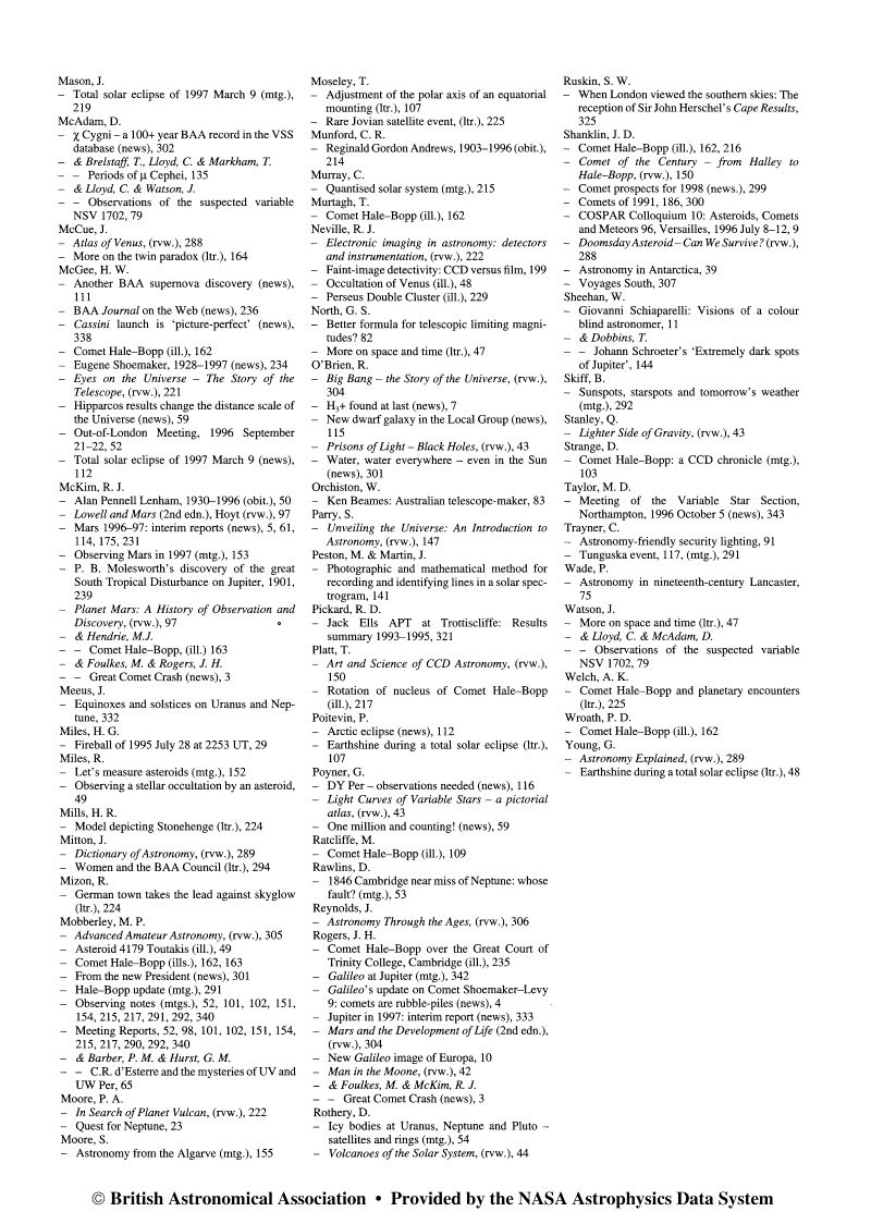 Journal of the British Astronomical Association, vol.108, no.1, p.9-28, London February 1998